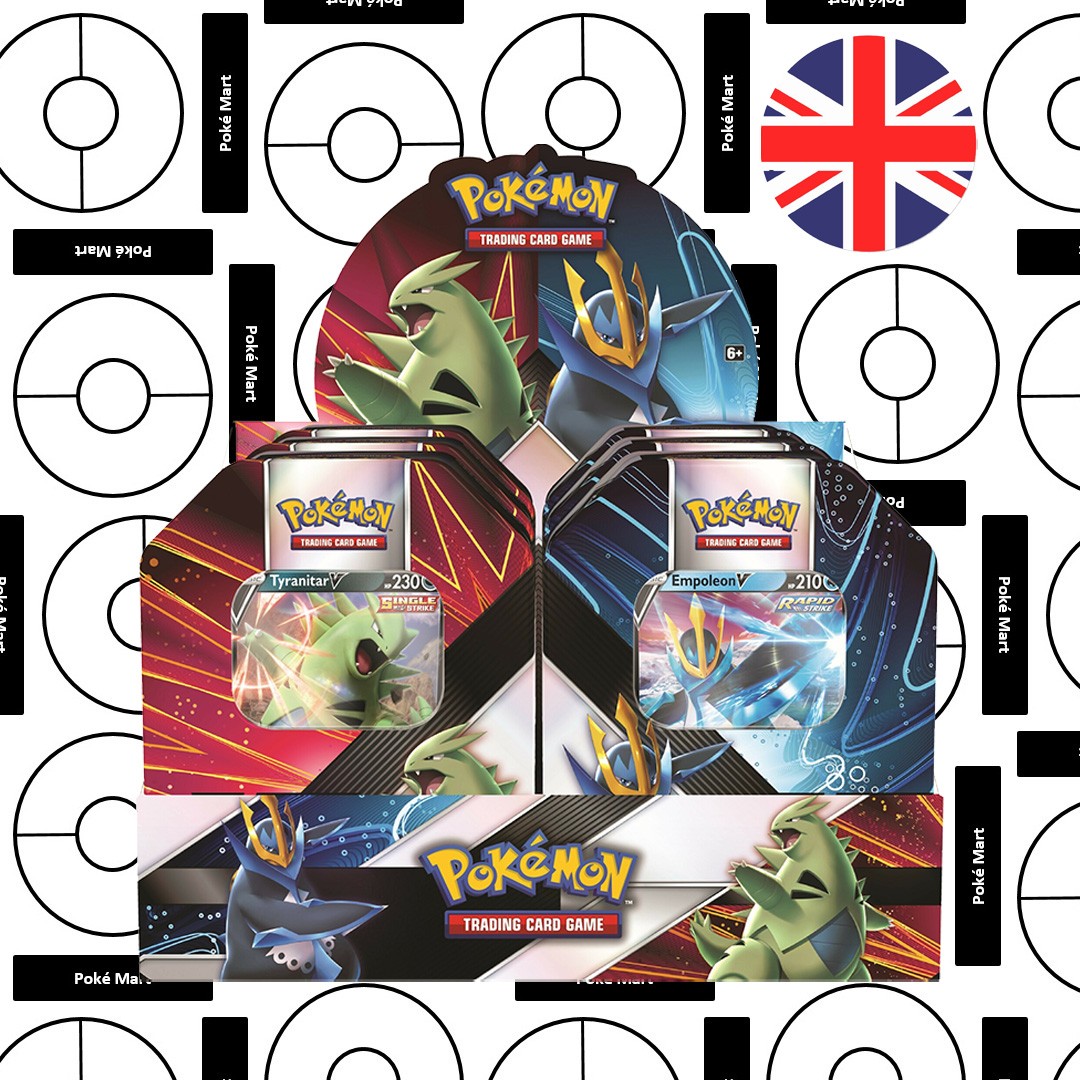 De Pokémon TCG: V Strikers Tin (Tyranitar V / Empoleon V) – Set bevat 2 verschillende tins.