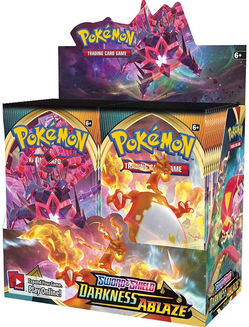 Jede Sword & Shield – Darkness Ablaze Boosterbox enthält 36 Boosterpacks. Eine Boosterbox ist ideal für jeden Pokémon-Sammler, der gerne viele Boosterpacks nacheinander öffnet, um seine Sammlung zu vervollständigen.