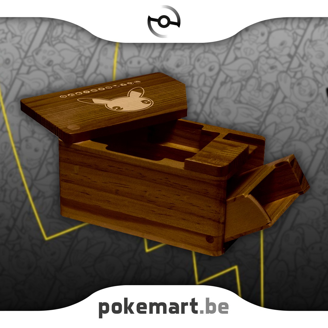 - Offiziell lizenzierte Holzbox mit lasergraviertem Gedenkdesign für Pokémon 25th Celebration.