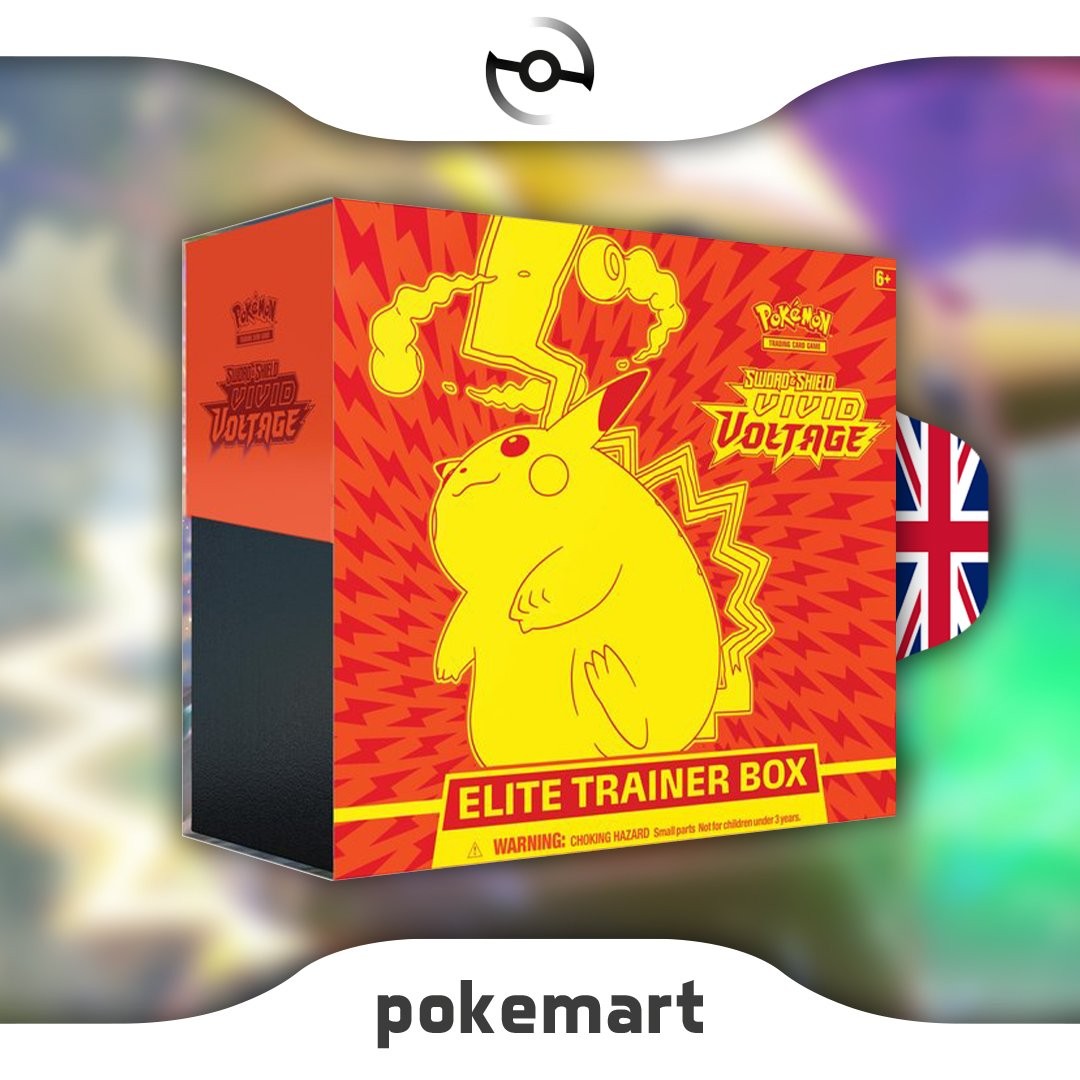 Vivid Voltage Elite Trainer Box: Vivid Voltage ist das vierte Pokémon TCG Sword & Shield mit Pikachu in der Hauptrolle. Das mythische Pokémon Zarude taucht zum ersten Mal im Pokémon TCG auf, zusammen mit anderen sehr begehrten Karten wie Pikachu VMAX, Orbeetle VMAX und Coalossal VMAX.